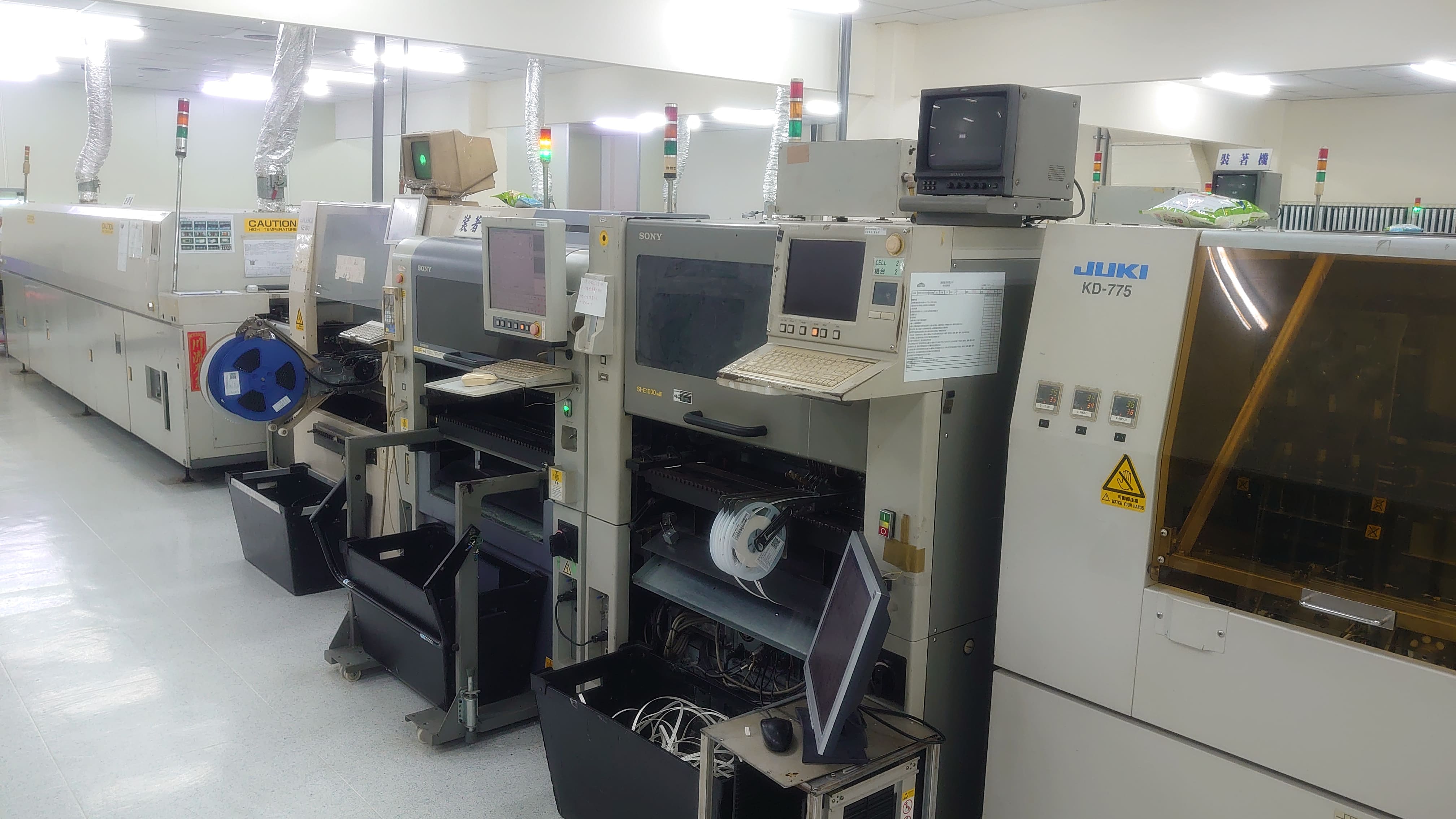 由视觉印钖机,点胶机,装着机*2,无铅回焊炉搭配成之 SMT装着线